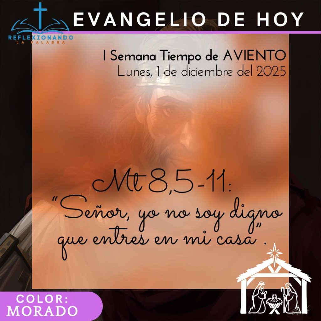 San Carlos de Foucauld Lunes, 1 de diciembre del 2025 Color: MORADO o BLANCO Primera Lectura. Is 4,2-6: “el vástago del Señor será joya y gloria, fruto del país, honor y ornamento para los supervivientes de Israel”. Salmo responsorial: 121,1-2.4-5.6-7.8-9: “Vamos alegres a la casa del Señor”. Evangelio. Mt 8,5-11: …