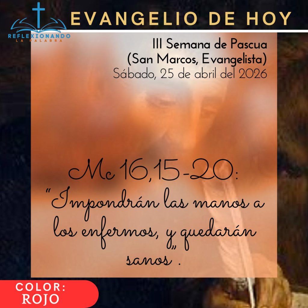- Evangelio. Mc 16,15-20: “Impondrán las manos a los enfermos, y quedarán sanos”