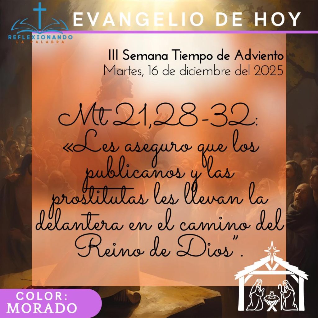 - Evangelio. Mt 21,28-32: «Les aseguro que los publicanos y las prostitutas les llevan la delantera en el camino del Reino de Dios”.