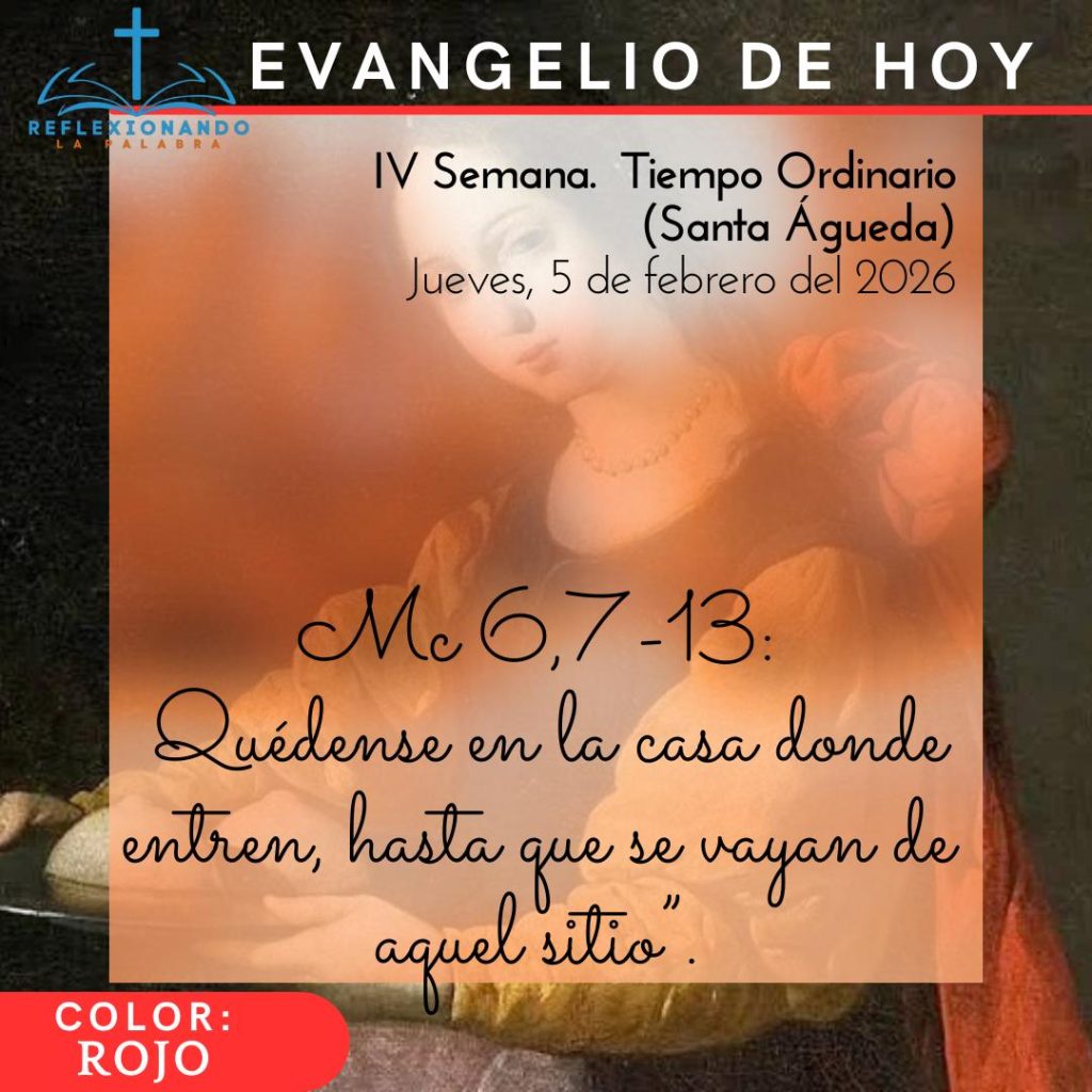- Evangelio. Mc 6,7-13: «Quédense en la casa donde entren, hasta que se vayan de aquel sitio”.