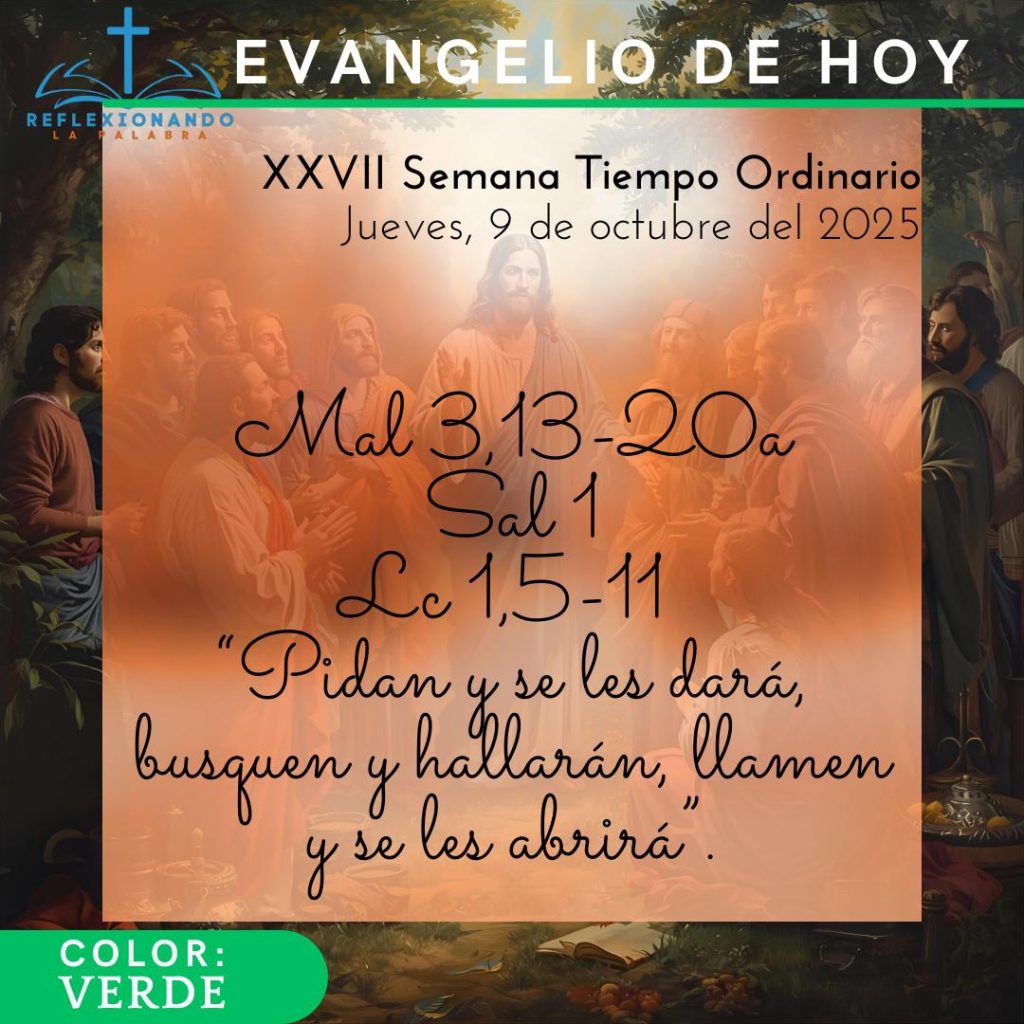 Memoria Libre: San Dionisio, Obispo y compañeros mártires, o San Juan Leonardi, Presbítero Jueves, 9 de octubre del 2025 Color: VERDE o ROJO o BLANCO Primera Lectura. Mal 3,13-20a: “Entonces los hombres religiosos hablaron entre sí: «El Señor atendió y los escuchó”. Salmo Responsorial 1,1-2.3.4 y 6: “Dichoso el hombre …