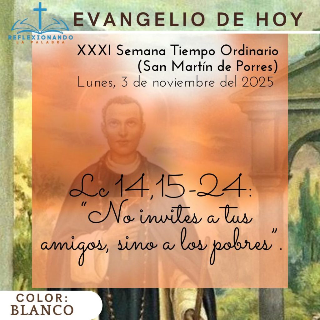 - Evangelio. Lc 14,15-24: “No invites a tus amigos, sino a los pobres”.