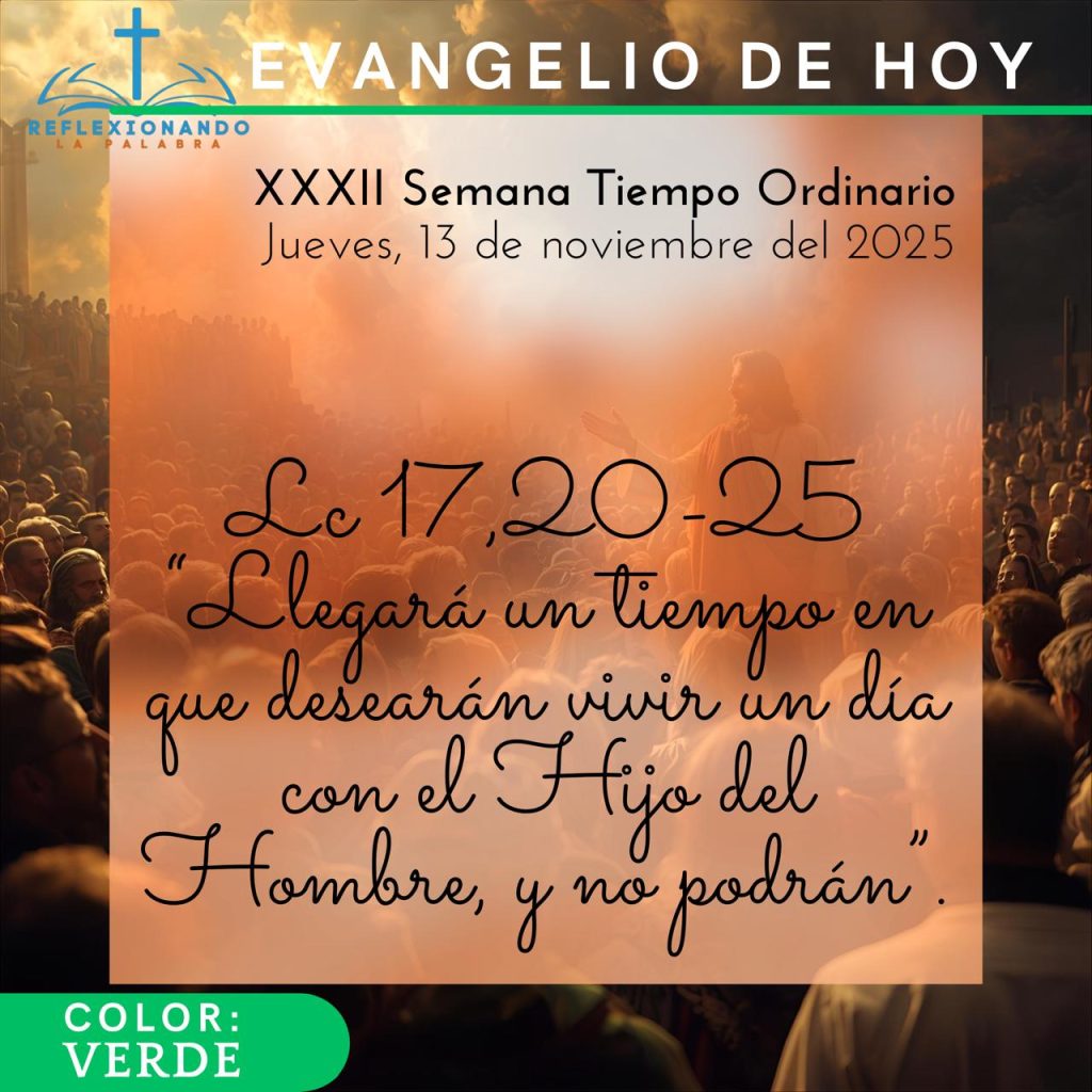 • Evangelio. Lc 17,20-25 “Llegará un tiempo en que desearán vivir un día con el Hijo del Hombre, y no podrán”.