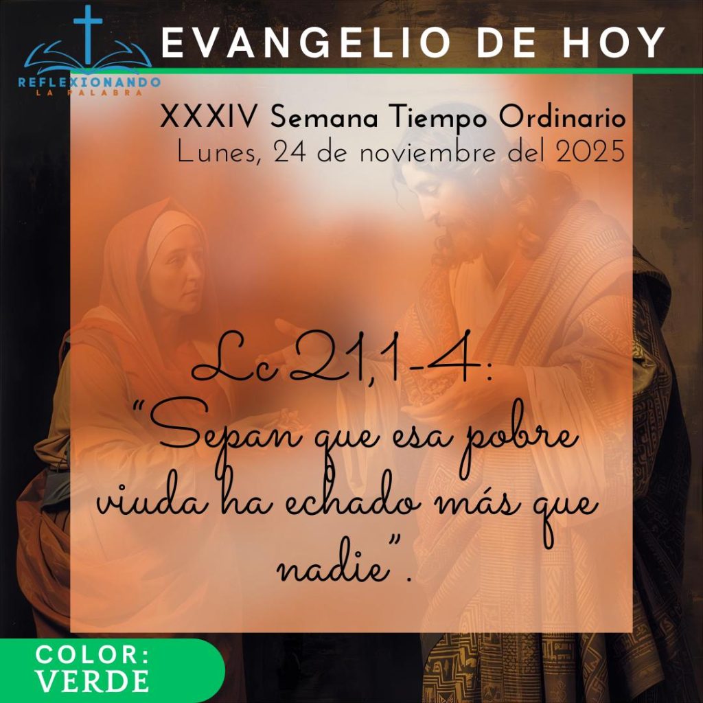 - Evangelio. Lc 21,1-4: “Sepan que esa pobre viuda ha echado más que nadie”.