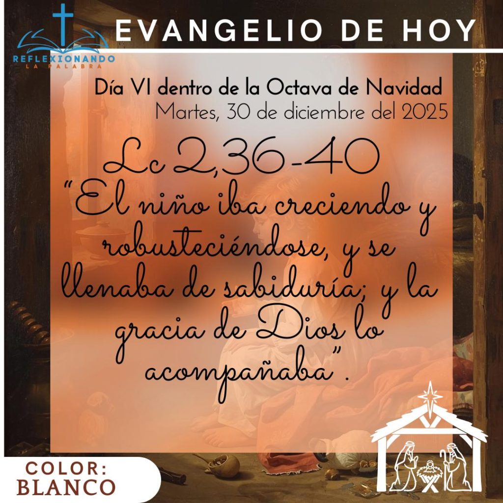 - Evangelio. Lc 2,36-40: “El niño iba creciendo y robusteciéndose, y se llenaba de sabiduría; y la gracia de Dios lo acompañaba”.