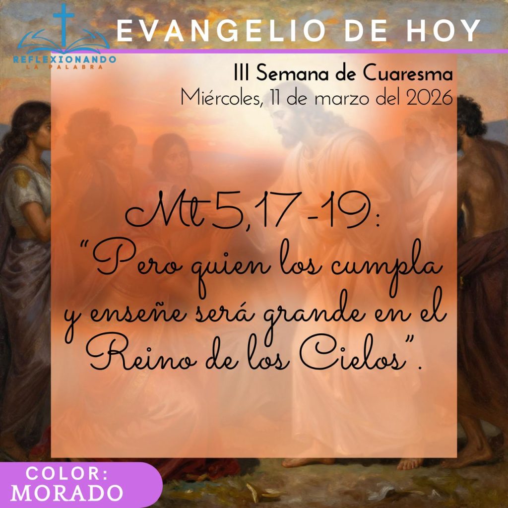 - Evangelio. Mt 5,17-19: “Pero quien los cumpla y enseñe será grande en el Reino de los Cielos”.