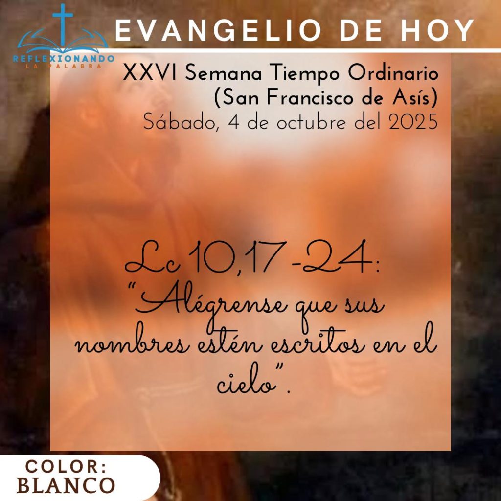 - Evangelio. Lc 10,17-24: “Alégrense que sus nombres estén escritos en el cielo”.