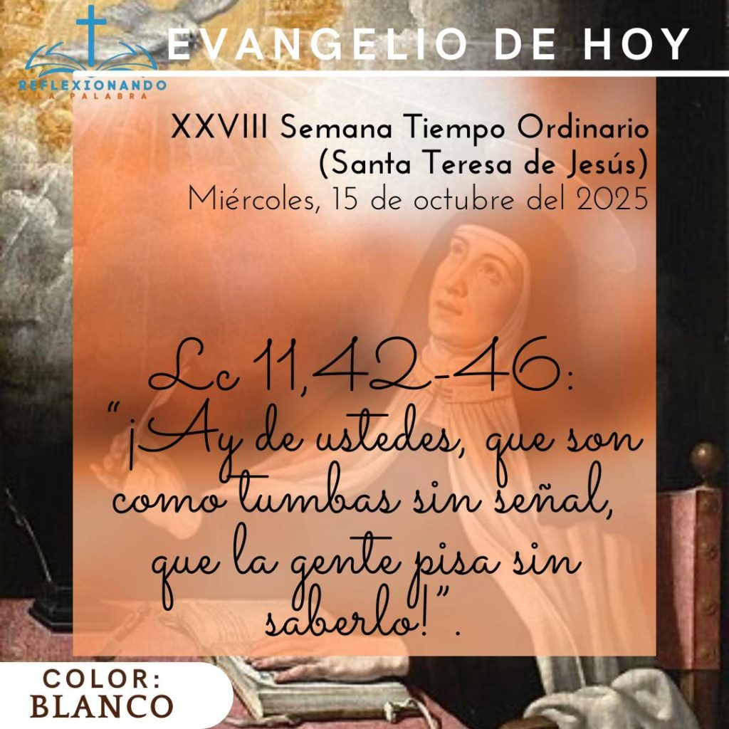 - Evangelio. Lc 11,42-46: “¡Ay de ustedes, que son como tumbas sin señal, que la gente pisa sin saberlo!”.
