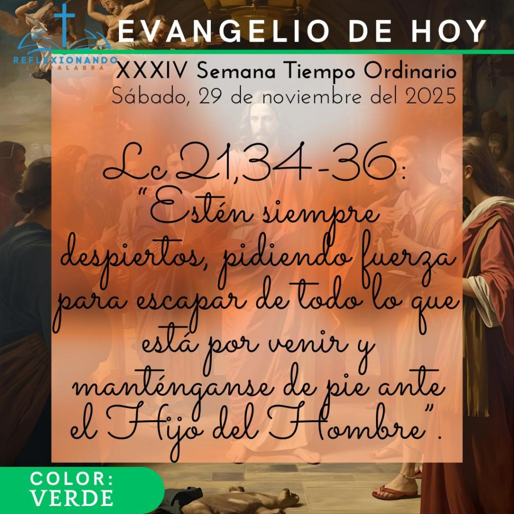 - Evangelio. Lc 21,34-36: “Estén siempre despiertos, pidiendo fuerza para escapar de todo lo que está por venir y manténganse de pie ante el Hijo del Hombre”.