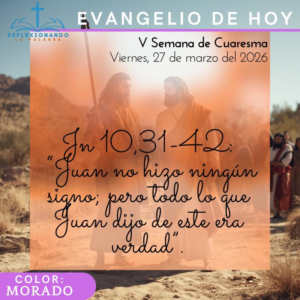 - Evangelio. Jn 10,31-42: “Juan no hizo ningún signo; pero todo lo que Juan dijo de este era verdad”.