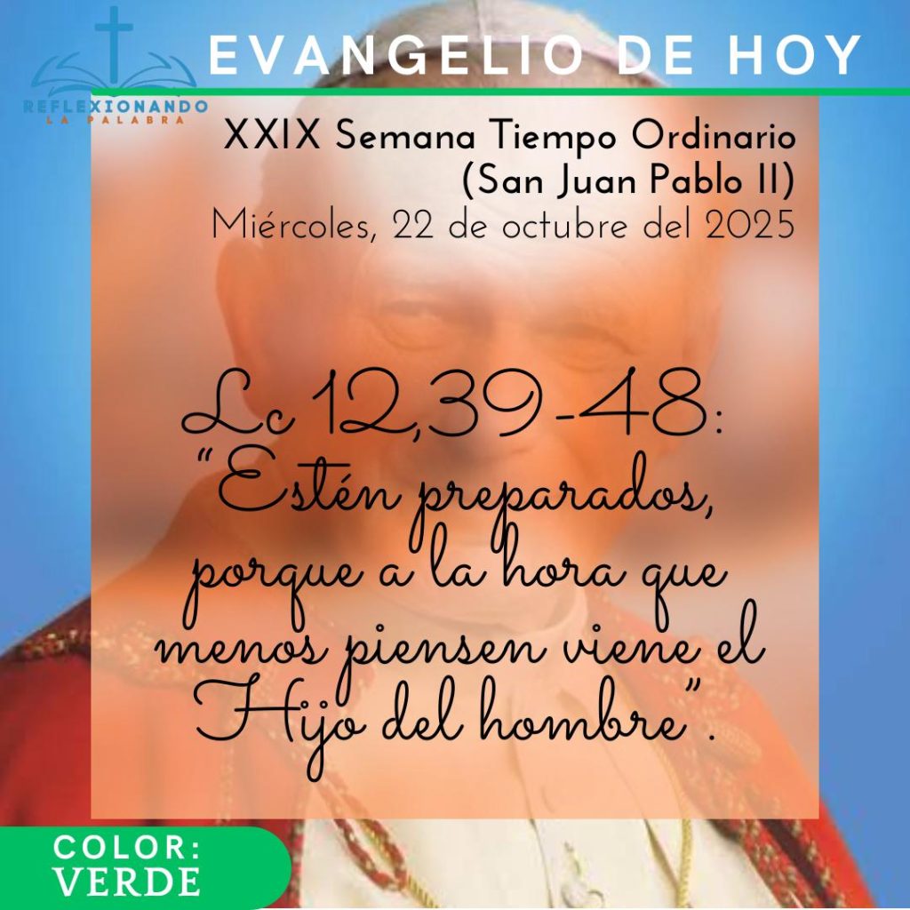 - Evangelio. Lc 12,39-48: “Estén preparados, porque a la hora que menos piensen viene el Hijo del hombre”.