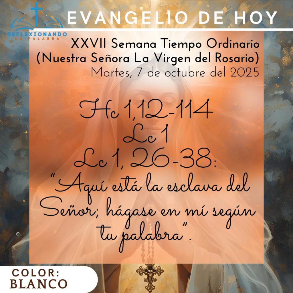 - Evangelio. Lc 1, 26-38 :“Aquí está la esclava del Señor; hágase en mí según tu palabra”.